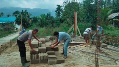 Di tengah kondisi cuaca mendung, kegiatan pembangunan tetap berjalan dengan semangat kebersamaan. Personel Brimob bergotong royong bersama warga memasang besi pondasi, melangsir material batu, serta merakit besi dan menimbun tanah sebagai bagian dari pembangunan rumah hunian sementara dan hunian tetap bagi warga terdampak banjir.